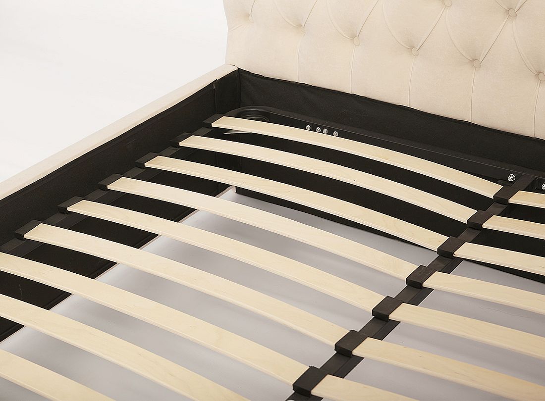 Кровать “АМЕЛИЯ” в классическом стиле . Каркас кровати изготовлен из массива натурального дерева хвойных пород и фанеры. Ортопедическое снование кровати металлическое с латами, изголовье и царги кровати обиты тканью. В качестве декора использована эффектная, объемная стежка капитоне. Эта мягкая кровать своим высоким изголовьем формирует роскошный вид во всем интерьере. Изящная модель непременно станет главным акцентом в комнате.