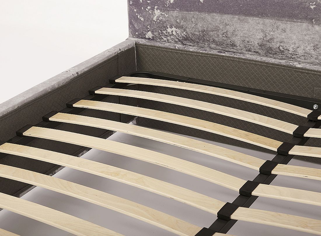 В кровати “Лакки 2” самое компактное изголовье из всей коллекции. Высота составляет всего 90 см. Данную особенность оценят владельцы малогабаритных спален. Кровать прекрасно подойдет и для спален с мансардной крышей. Её можно расположить под окном, что позволит разглядывать звезды лунной ночью. Каркас кровати изготовлен из массива натурального дерева хвойных пород и фанеры. Ортопедическое снование кровати металлическое с латами.