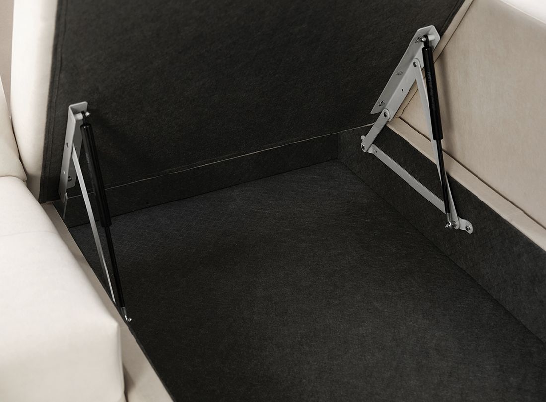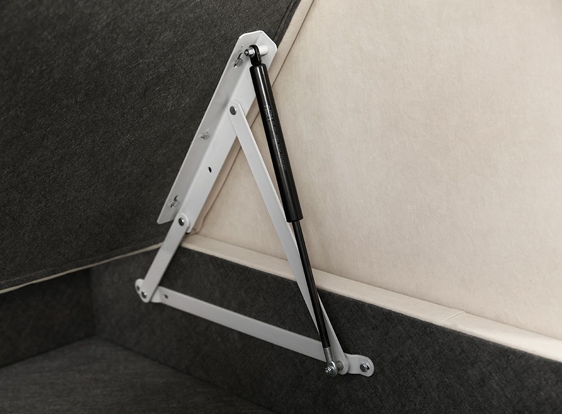 Механизм трансформации «аккордеон» представляет собой стальной каркас, на котором в определенном порядке расположены березовые латы, создающие ортопедический эффект. В разобранном виде получается полноценное, ровное спальное место.